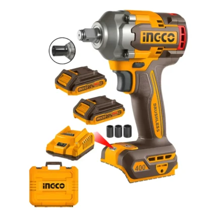 PISTOLA DE IMPACTO BL +2BAT 2AH Y CARG INDUSTRIAL 1/2″ 20V/400NM CIWLI2040 INGCO